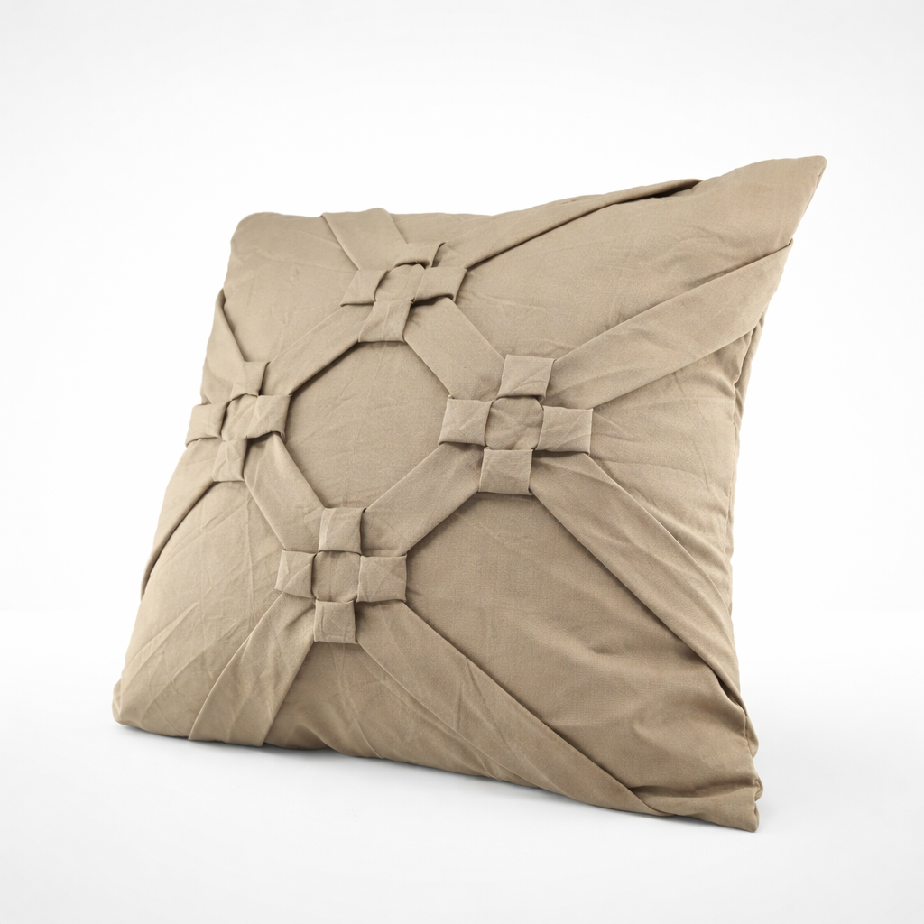 Bring understated luxury into your living space with the Premhilsha Luxe Knot Cushion, crafted to deliver elegance, comfort, and refined detailing. The intricate handcrafted knot and panel design creates a balanced, symmetrical look that enhances both modern and classic interiors.